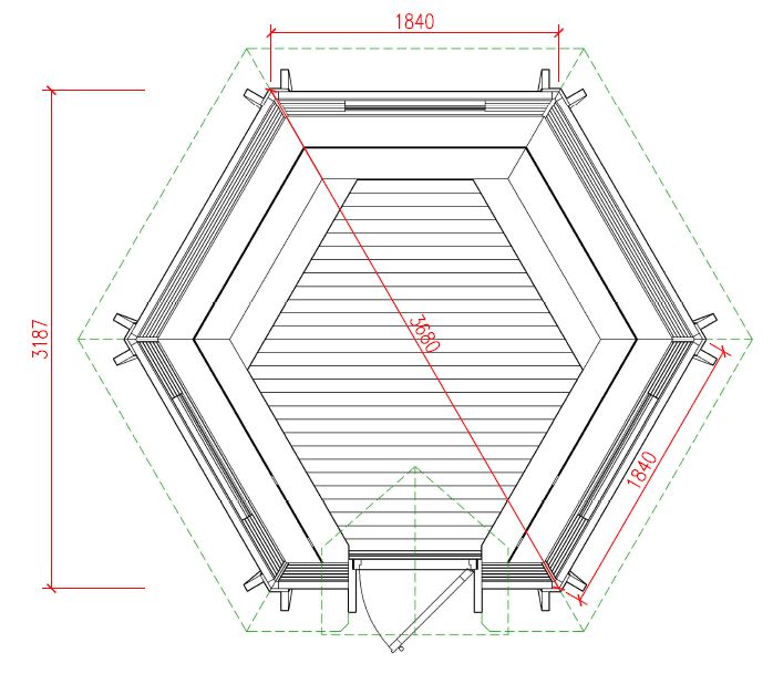 EXCLUSIVE roštilj kućica šesterokutnog oblika s ukošenim zidovima, unutarnje površine 7,0 m² za 10 do 12 osoba