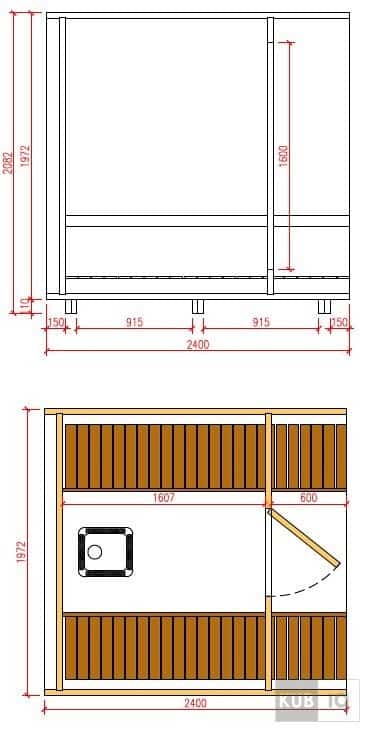 - 2 prozora na prednjoj ili zadnjoj strani saune